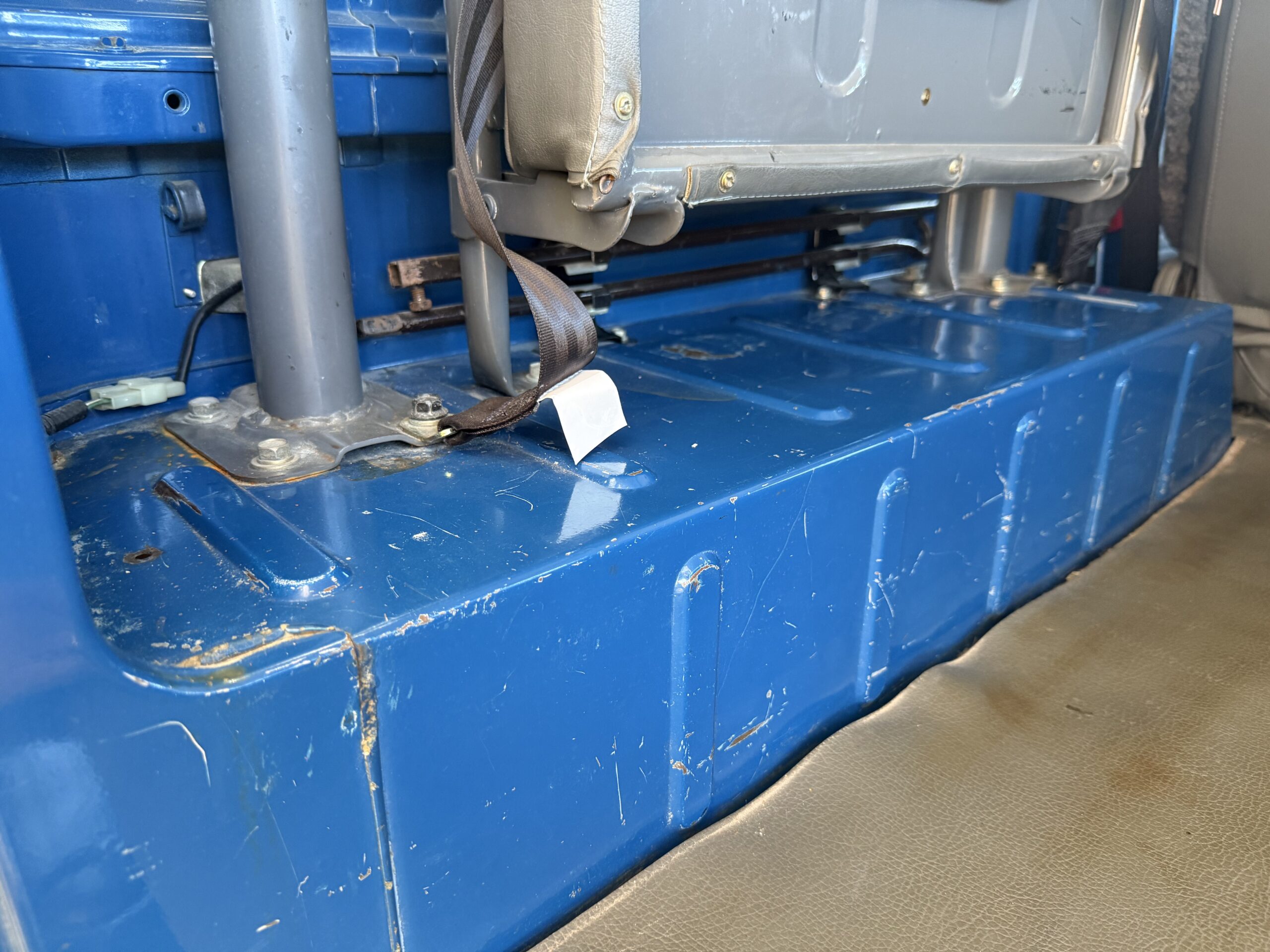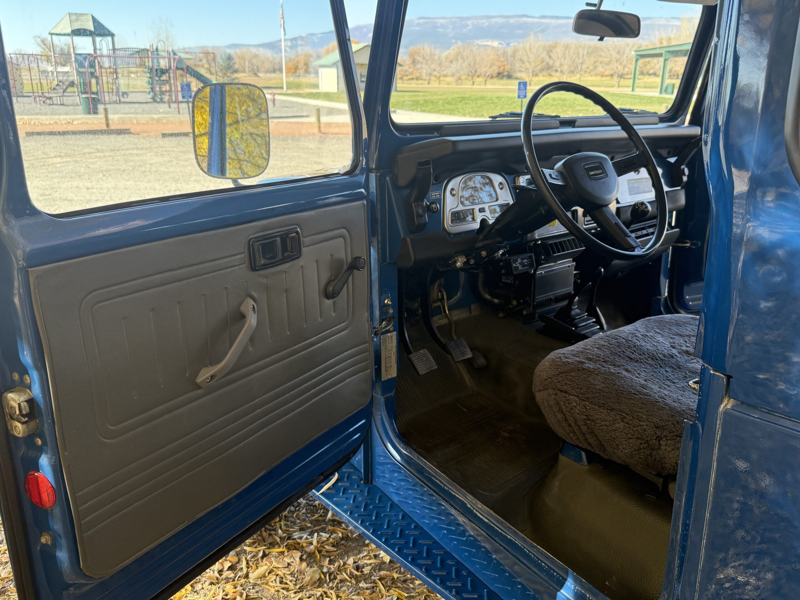 It is important to note that at some point, the bib, front fenders and hood of this Land Cruiser were refinished. I’ve inspected the components and I am convinced that they are the original sheet metal. There are no signs of an accident or bodywork on them, so my guess is they were just refinished because of rock chips. The front seats also have been recovered, and they feel like they have new foam in them.