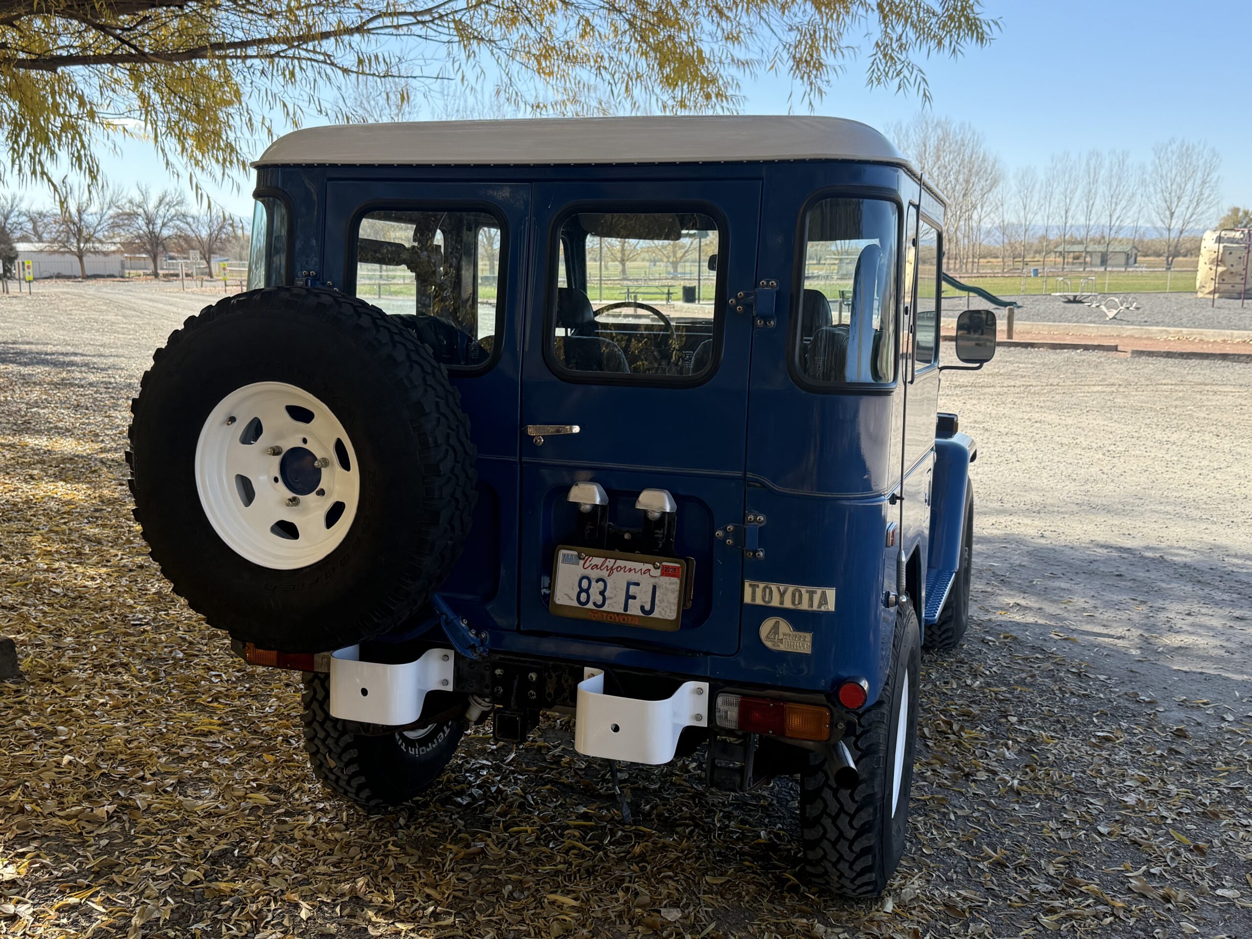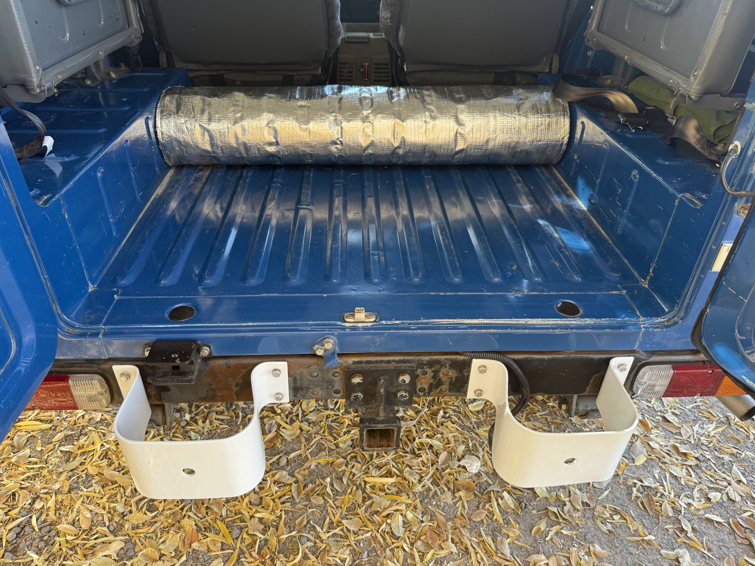 First of all at some point someone painted the OEM bumper and rear bumperettes white. That needs to be remedied. In fact, I’ve already ordered a new bumper and bumperettes from Toyota to replace them. I’ve also ordered a front OEM license plate frame. Just replacing those few, simple items is going to make a big visual difference in the vehicle. The cosmetic work could stop there, but there’s a 2nd level that I would probably also do. There is a very small area of rust just under the four-wheel-drive emblem. This area is reported to have been the same for 30 years. I would address this area of rust and while I was at it, I would remove the two aftermarket antennas in the rear quarter panels, and do minimal bodywork and paint to reset all of this to stock.
