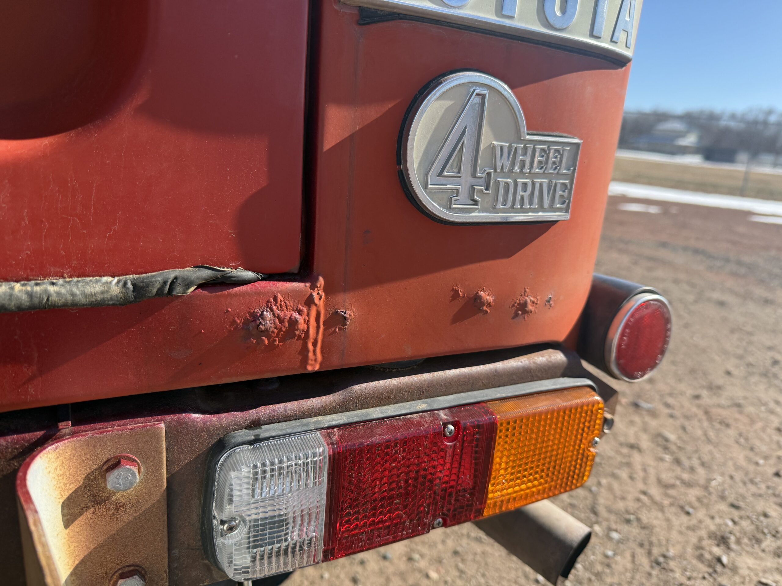 A hard one to let go of for its only owner, this Western Colorado 1977 Fj40 is on consignment for sale.  It is mostly stock and has been at our shop for a handful of small things over the years including most recently, a knuckle rebuild and the installation of aftermarket fuel injection.  it has rust on the rear sill, front fenders, and on the driver side door but despite that, I would still classify it in the “above average” category body wise.